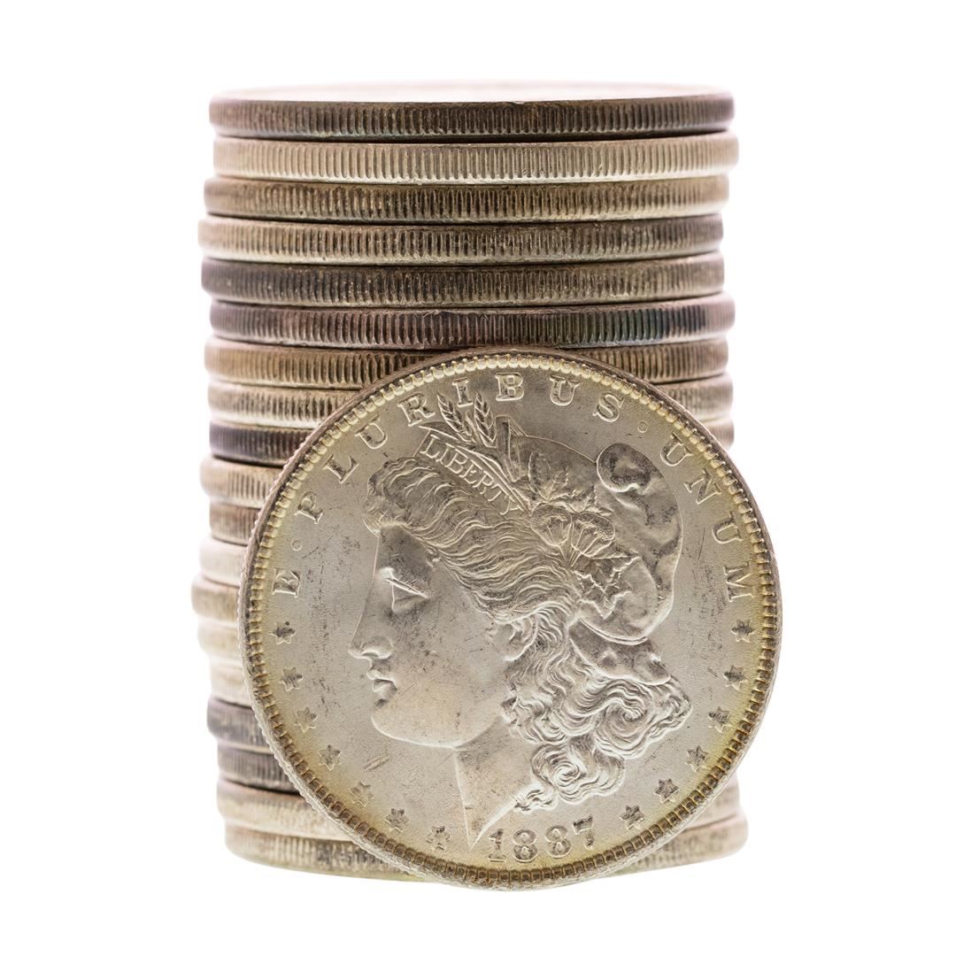 Roll of (20) Brilliant Uncirculated 1887 $1 Morgan Silver Dollar Coins