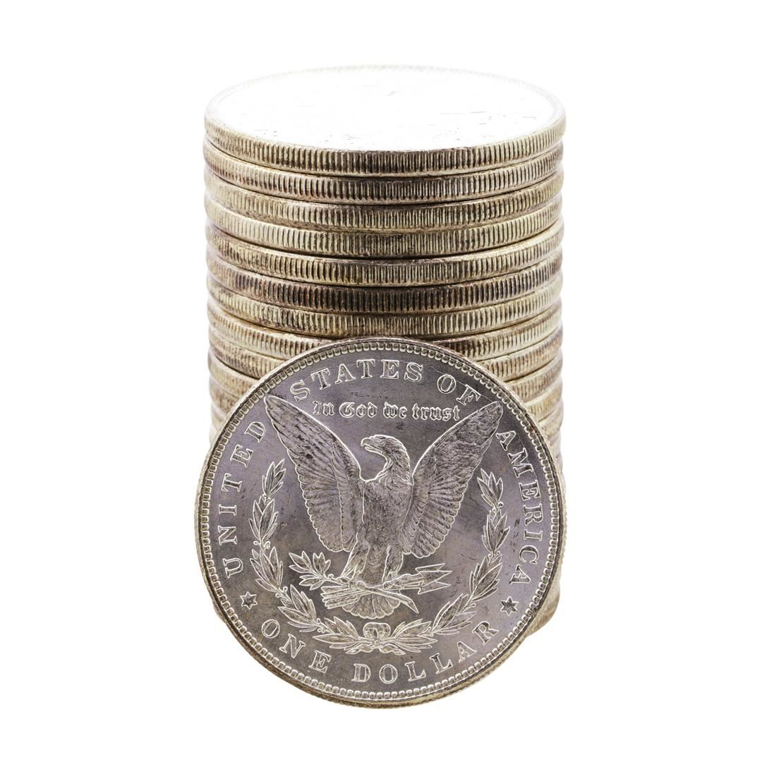 One Roll of (20) Brilliant Uncirculated 1887 $1 Morgan Silver Dollar Coins.