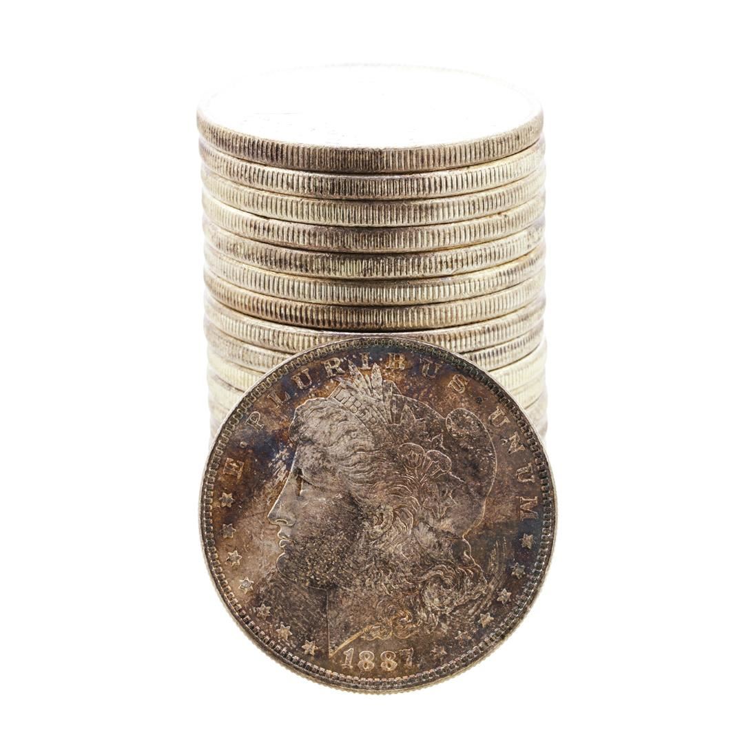 One Roll of (20) Brilliant Uncirculated 1887 $1 Morgan Silver Dollar Coins.
