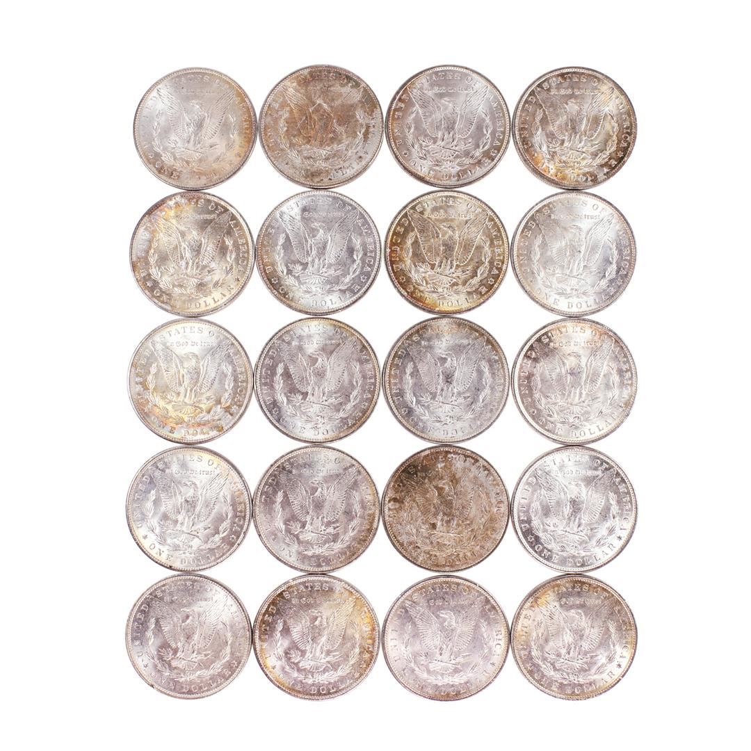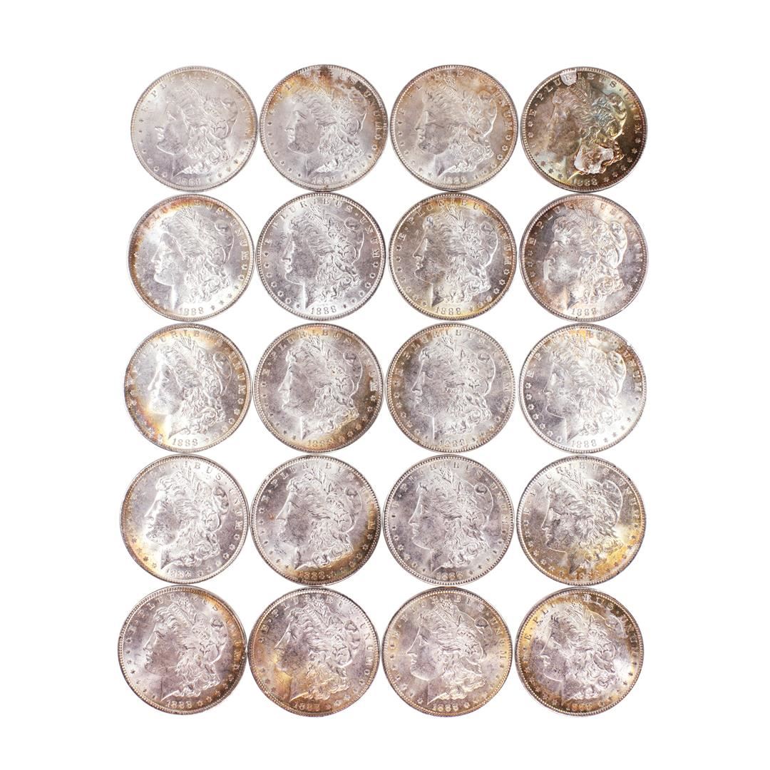 One Roll of (20) Brilliant Uncirculated 1888 $1 Morgan Silver Dollar Coins Nice Toning.