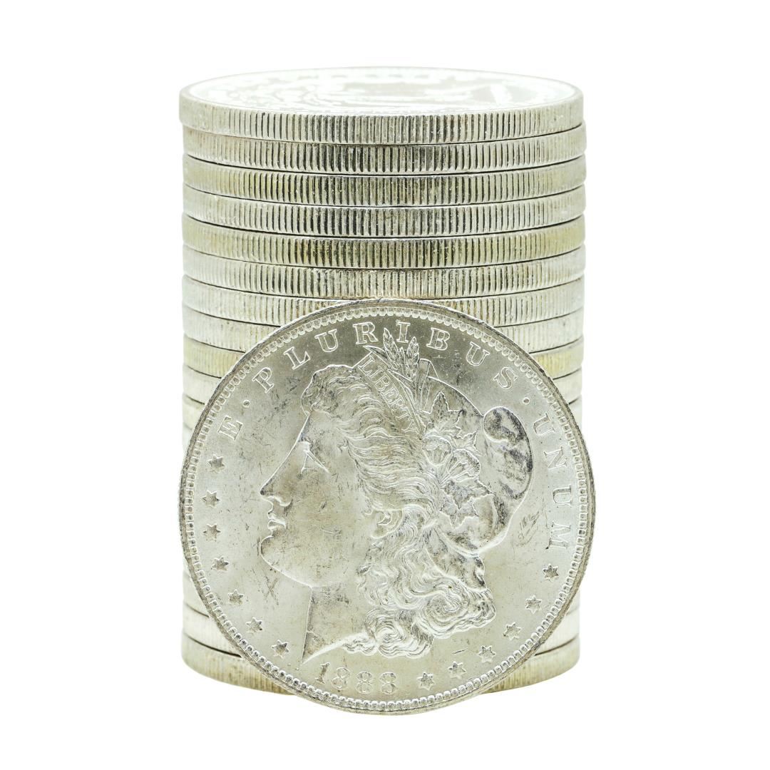 One Roll of (20) Brilliant Uncirculated 1888-O $1 Morgan Silver Dollar Coins.