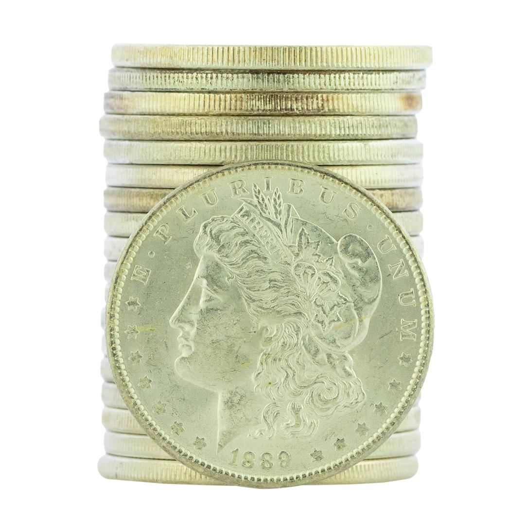 One Roll of (20) Brilliant Uncirculated 1889 $1 Morgan Silver Dollar Coins.
