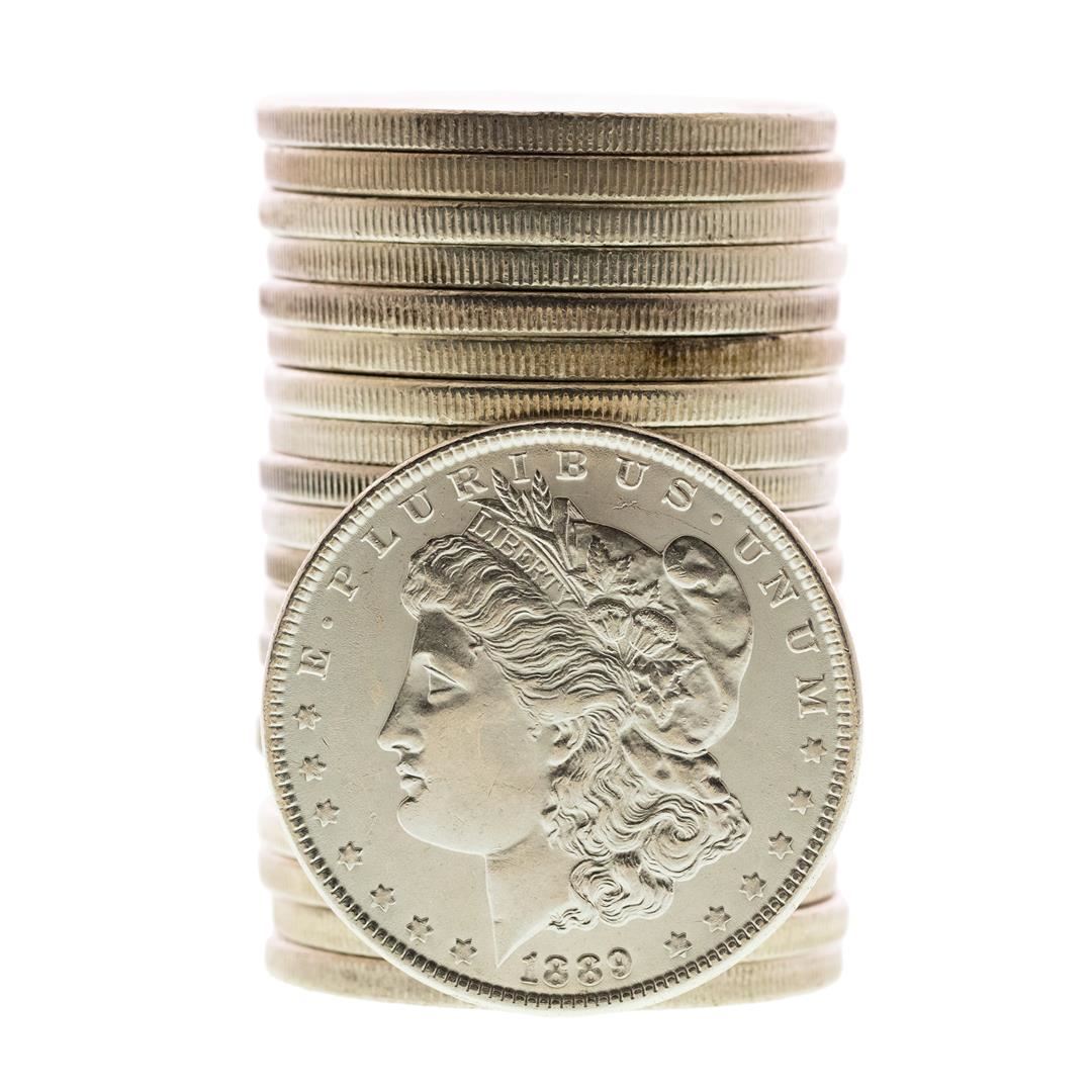 One Roll of (20) Brilliant Uncirculated 1889 $1 Morgan Silver Dollar Coins.