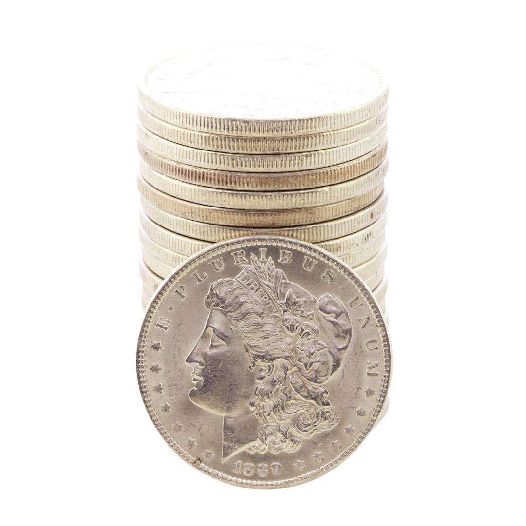 One Roll of (20) Brilliant Uncirculated 1889 $1 Morgan Silver Dollar Coins.