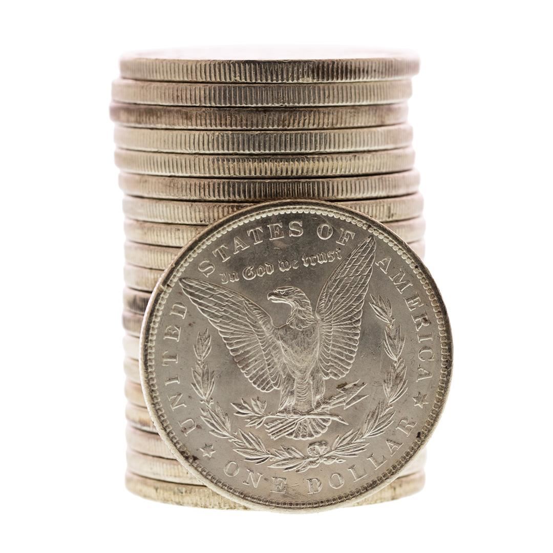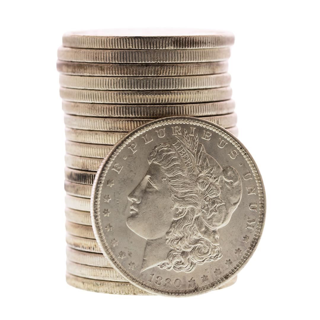 One Roll of (20) Brilliant Uncirculated 1890 $1 Morgan Silver Dollar Coins.