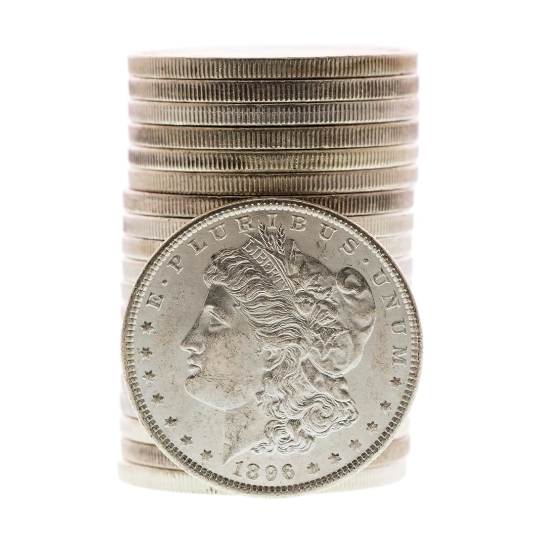 One Roll of (20) Brilliant Uncirculated 1896 $1 Morgan Silver Dollar Coins.