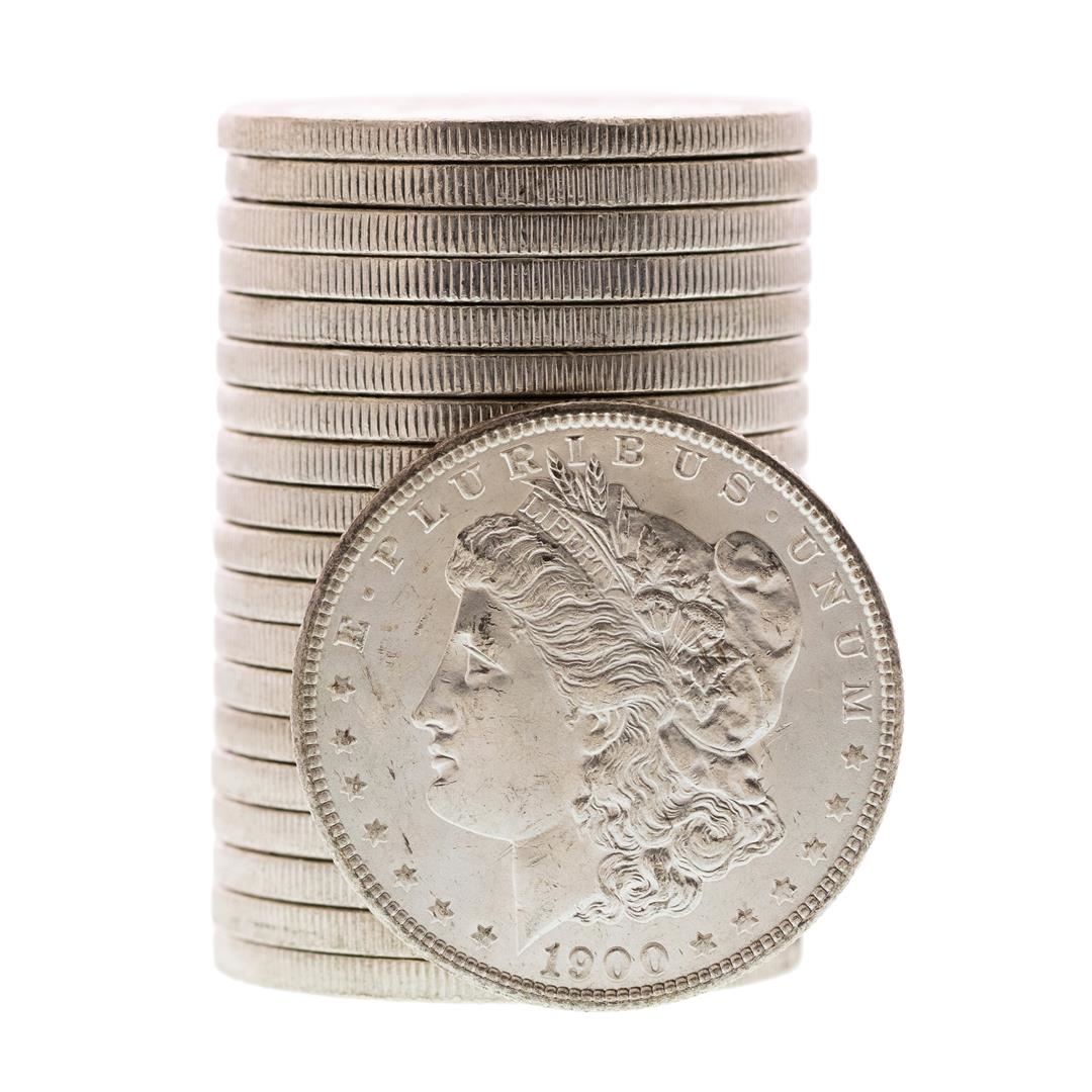 One Roll of (20) Brilliant Uncirculated 1900 $1 Morgan Silver Dollar Coins.