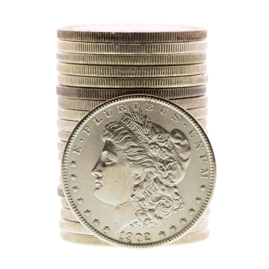 One Roll of (20) Brilliant Uncirculated 1902-O $1 Morgan Silver Dollar Coins.