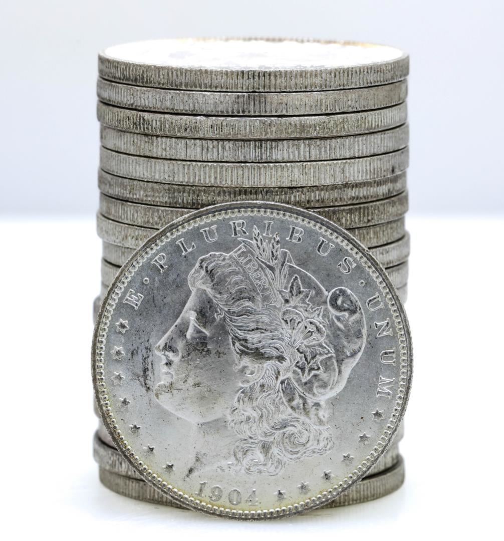 One Roll of (20) Brilliant Uncirculated 1904-O $1 Morgan Silver Dollar Coins.