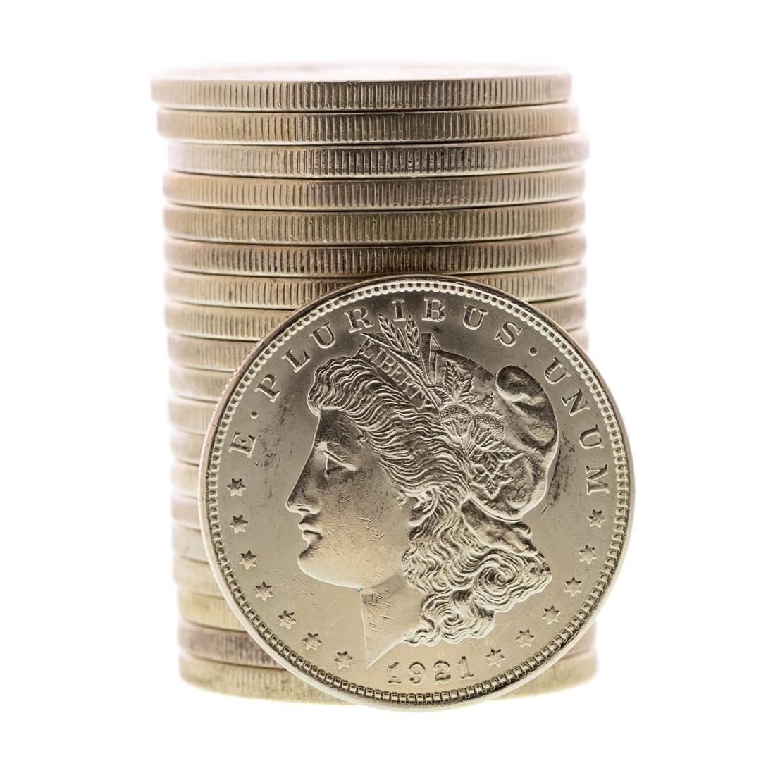 Roll of (20) Brilliant Uncirculated 1921 $1 Morgan Silver Dollar Coins