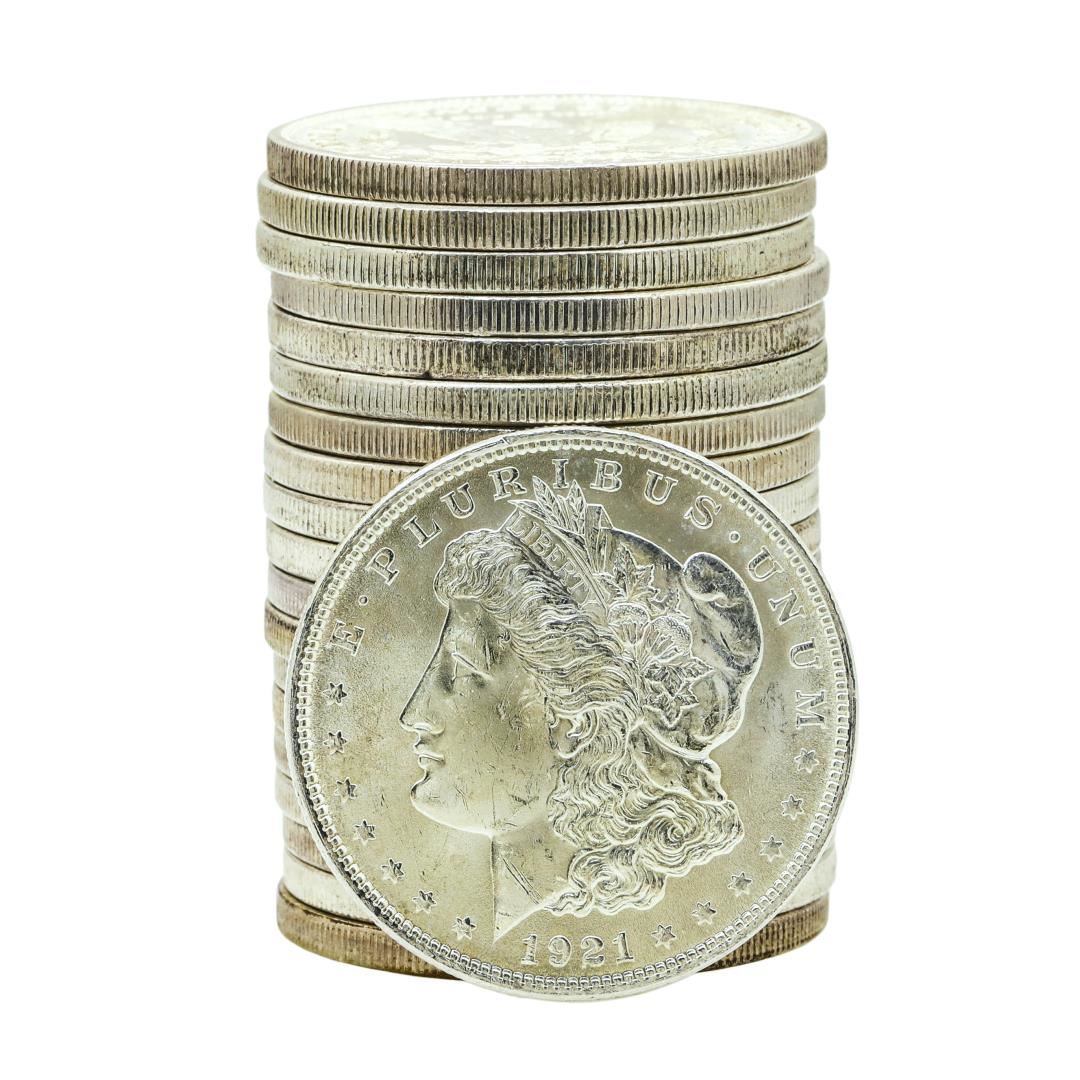 Roll of (20) Brilliant Uncirculated 1921 $1 Morgan Silver Dollar Coins