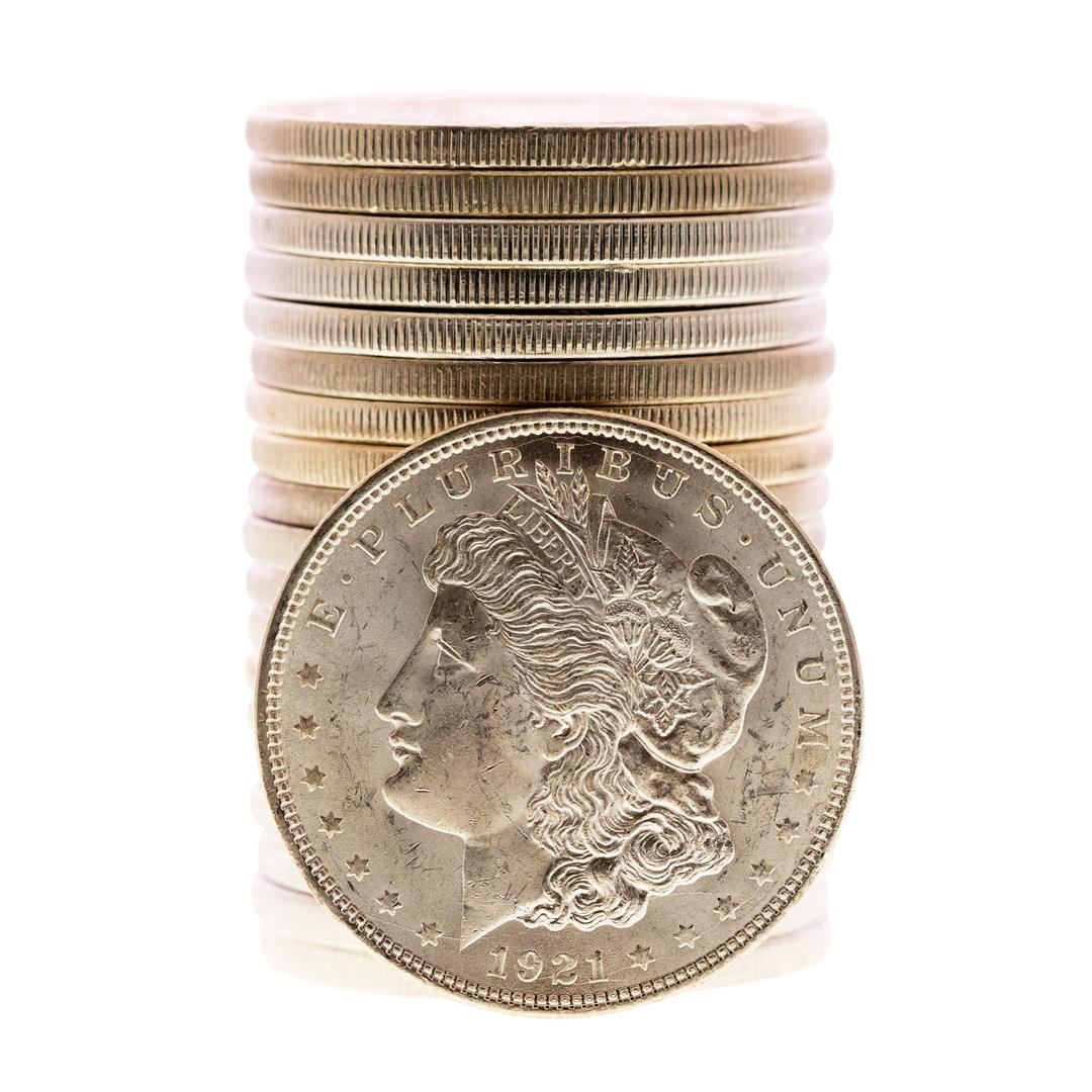 Roll of (20) Brilliant Uncirculated 1921 Morgan Silver Dollar Coins