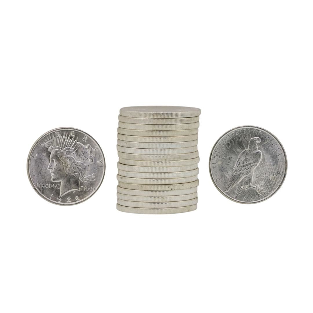 Roll of (20) Brilliant Uncirculated 1922 $1 Peace Silver Dollar Coins
