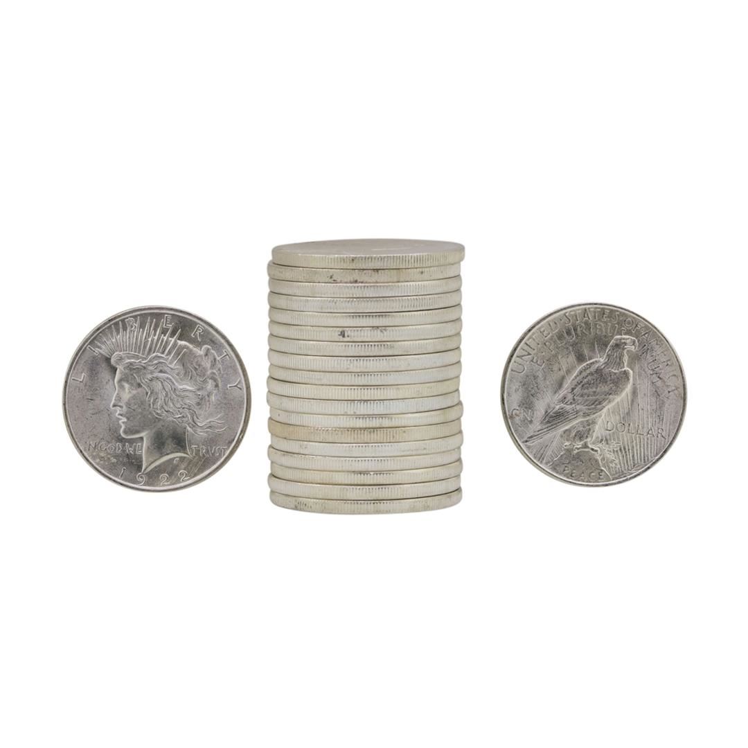 Roll of (20) Brilliant Uncirculated 1922 $1 Peace Silver Dollar Coins