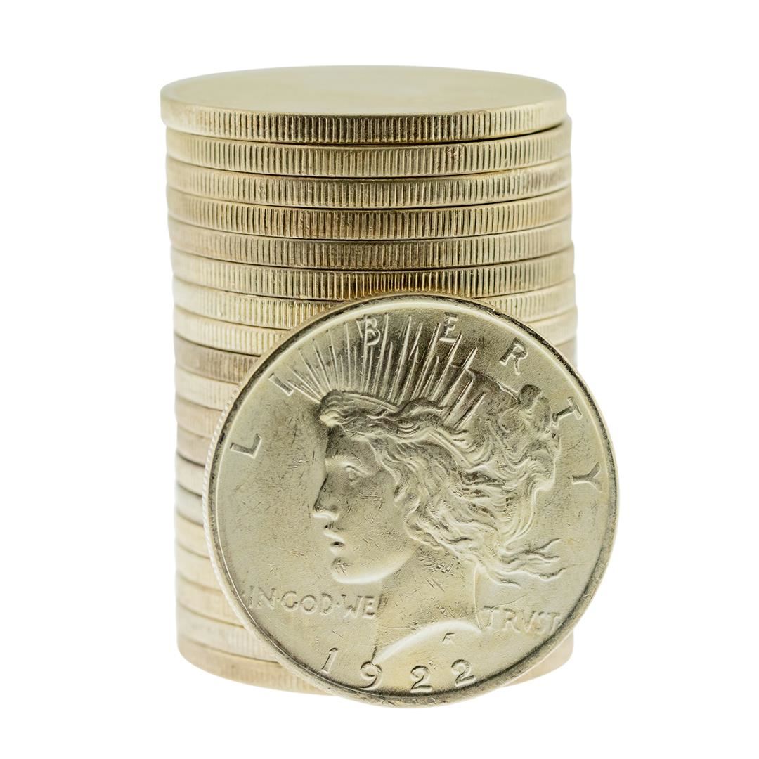 Roll of (20) Brilliant Uncirculated 1922 $1 Peace Silver Dollar Coins