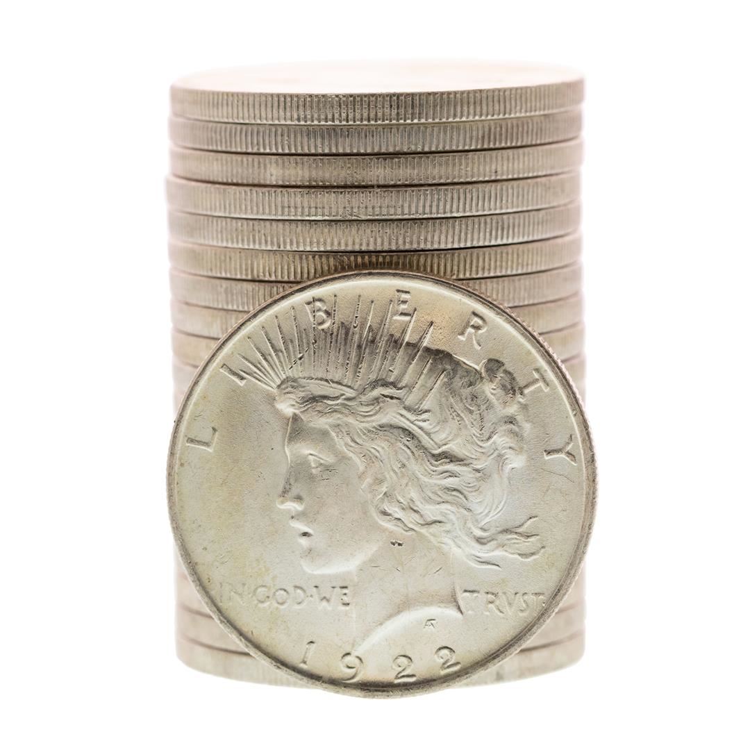 Roll of (20) Brilliant Uncirculated 1922 $1 Peace Silver Dollar Coins
