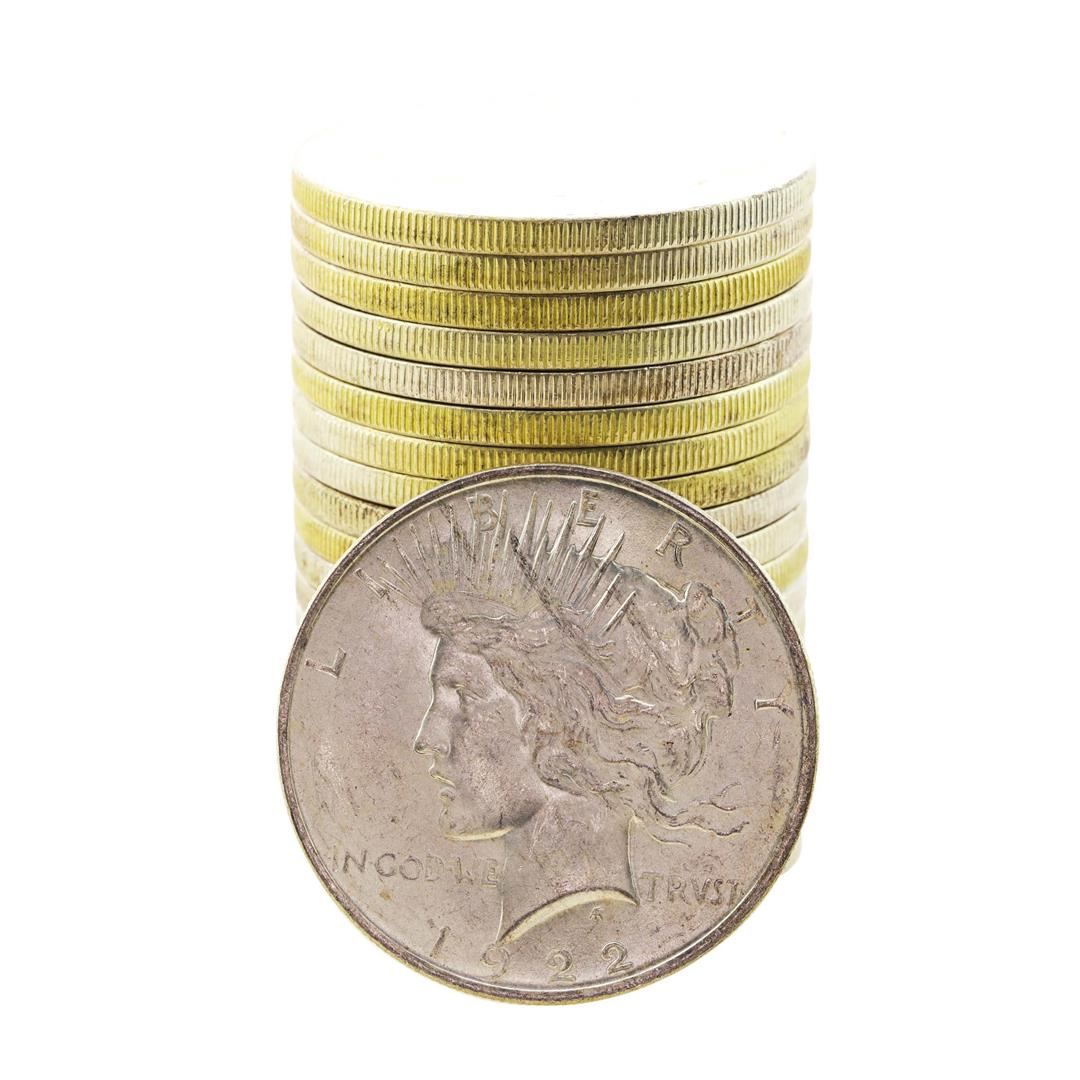 Roll of (20) Brilliant Uncirculated 1922 $1 Peace Silver Dollar Coins