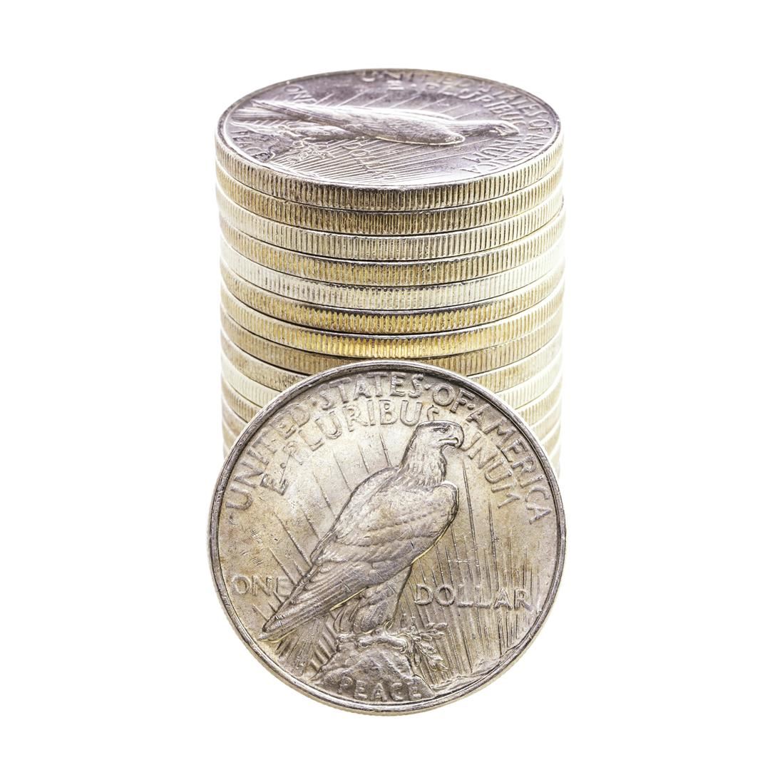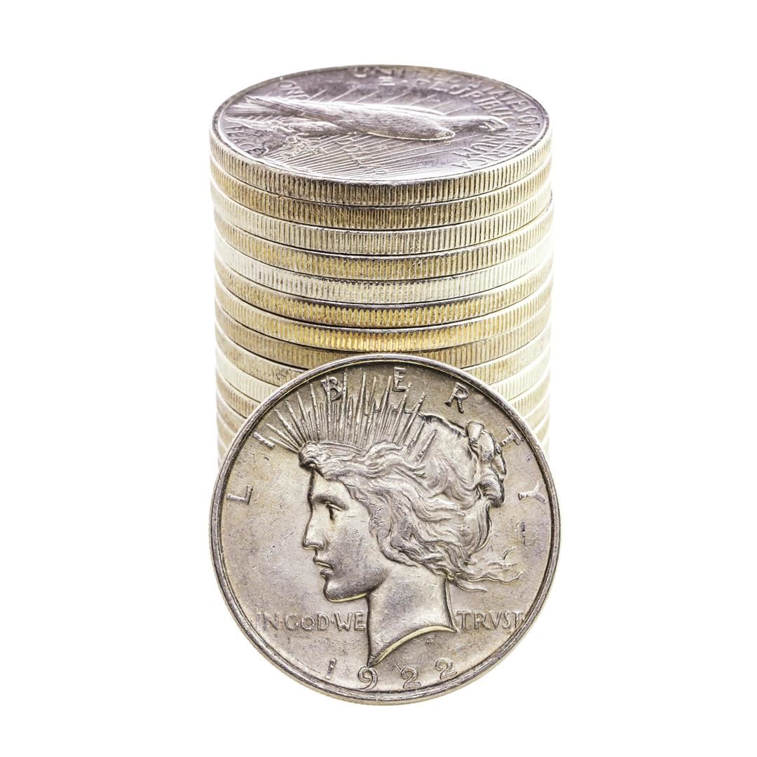 One Roll of (20) Brilliant Uncirculated 1922 $1 Peace Silver Dollar Coins.
