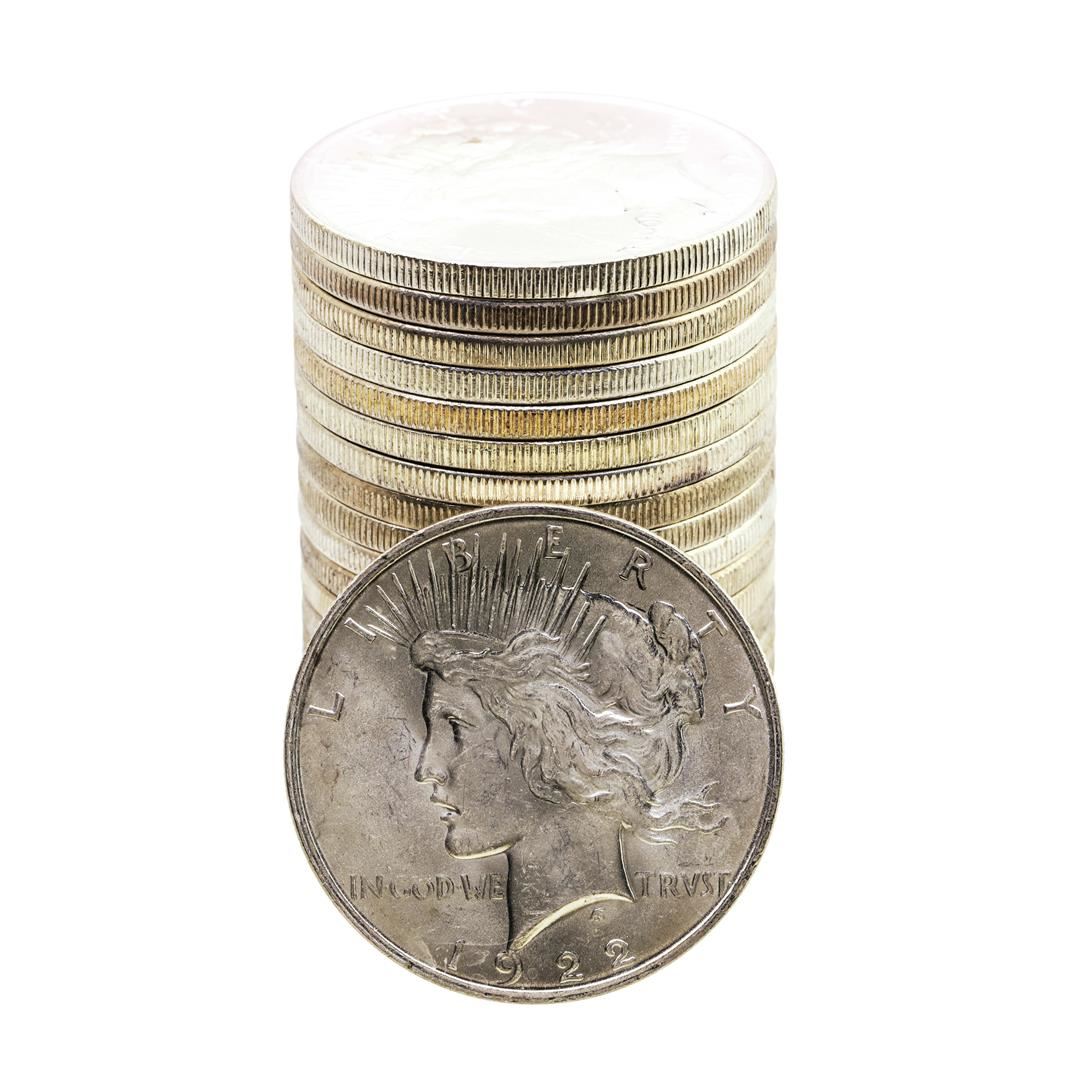 Roll of (20) Brilliant Uncirculated 1922 $1 Peace Silver Dollar Coins