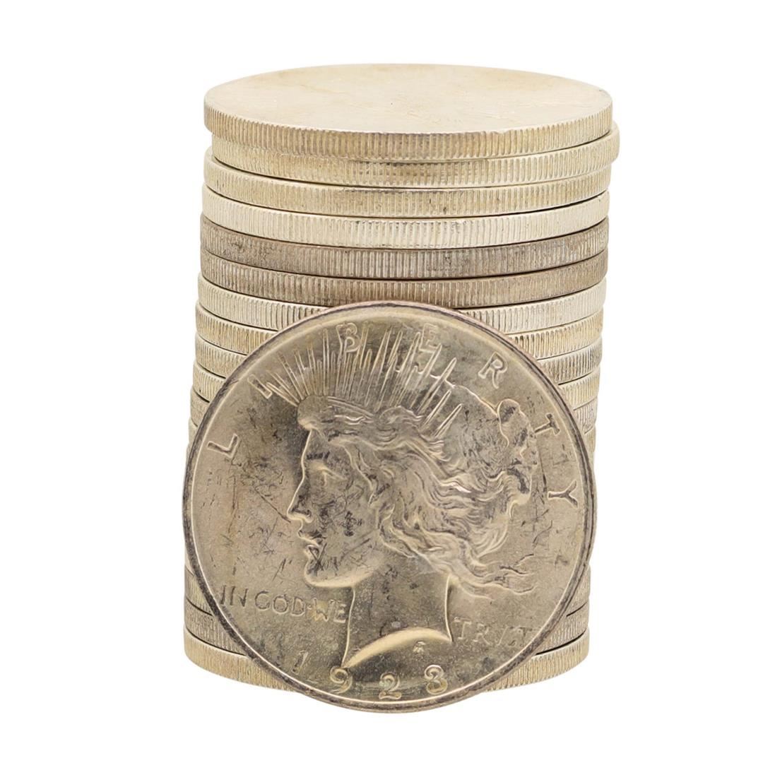 Roll of (20) Brilliant Uncirculated 1923 $1 Peace Silver Dollar Coins