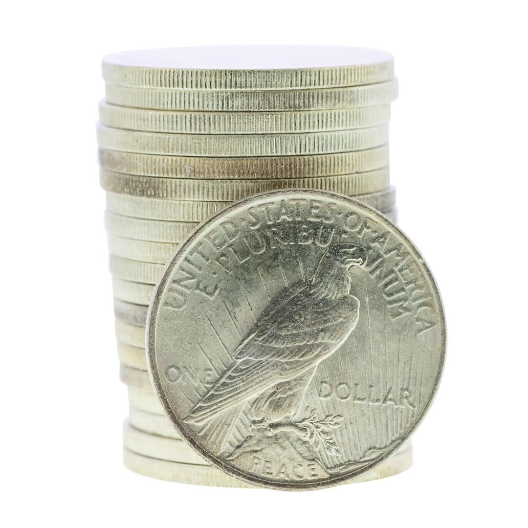 One Roll of (20) Brilliant Uncirculated 1923 $1 Peace Silver Dollar Coins.