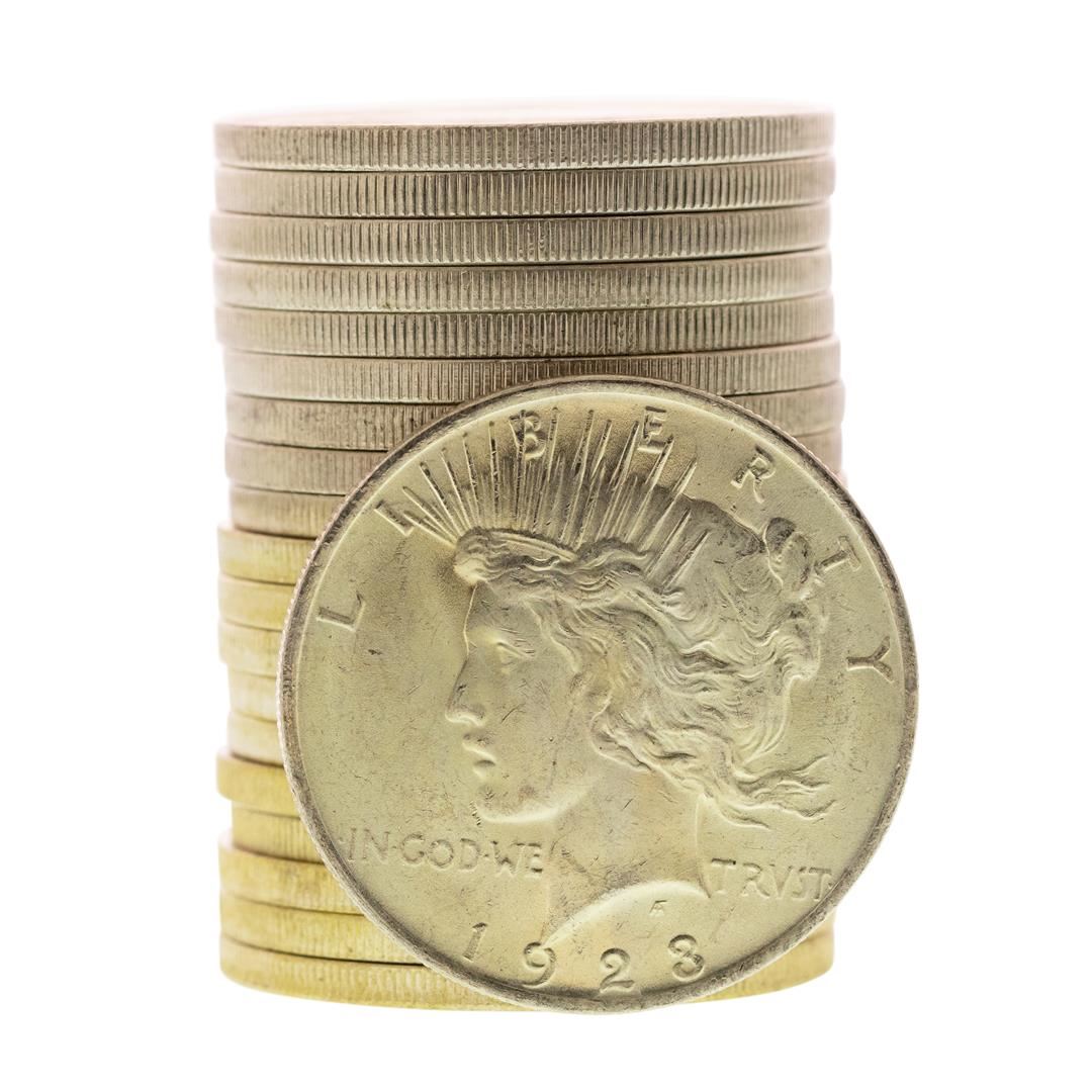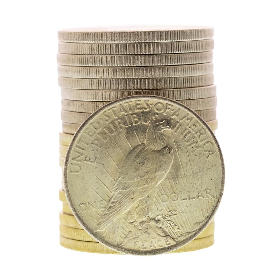 One Roll of (20) Brilliant Uncirculated 1923 $1 Peace Silver Dollar Coins.