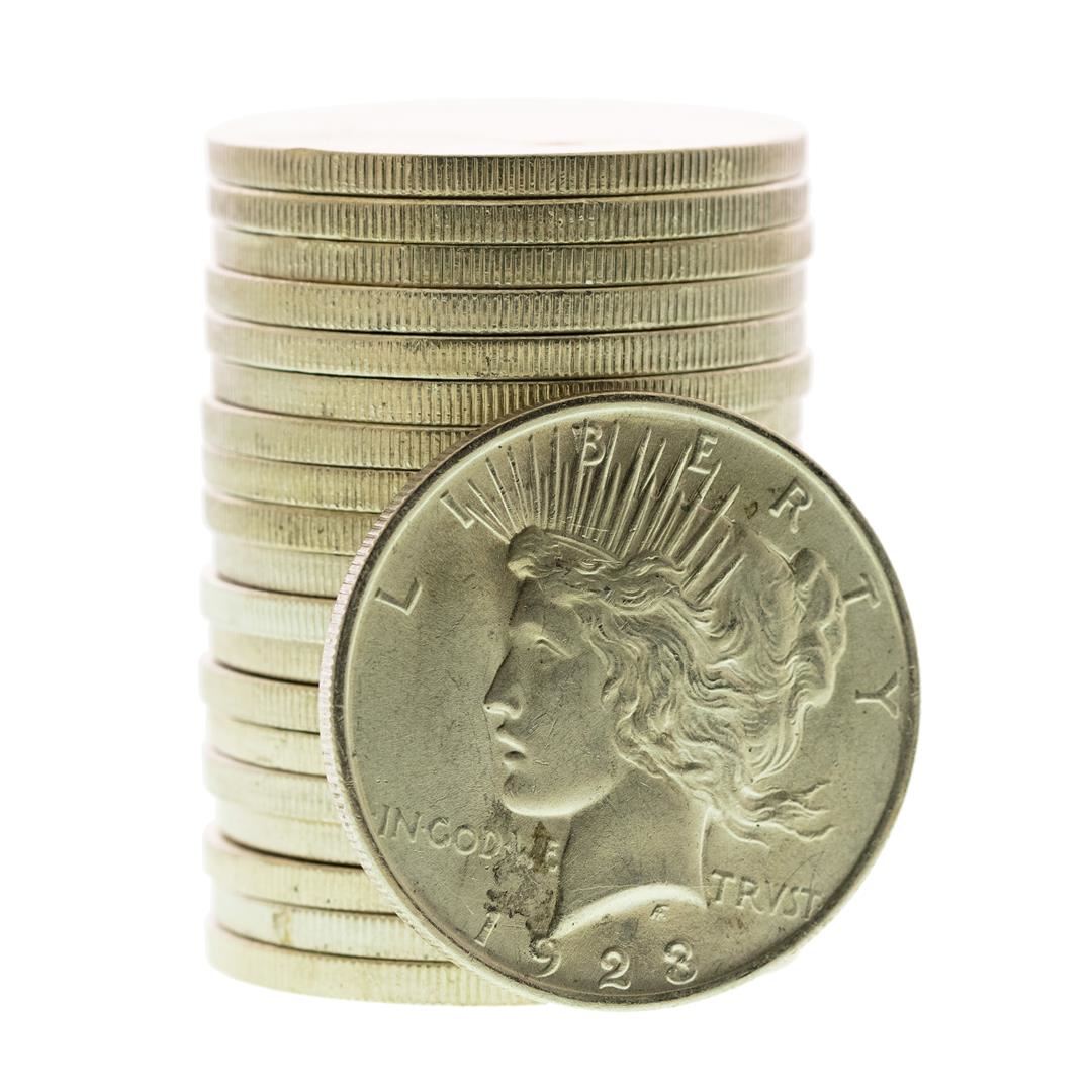 Roll of (20) Brilliant Uncirculated 1923 $1 Peace Silver Dollar Coins