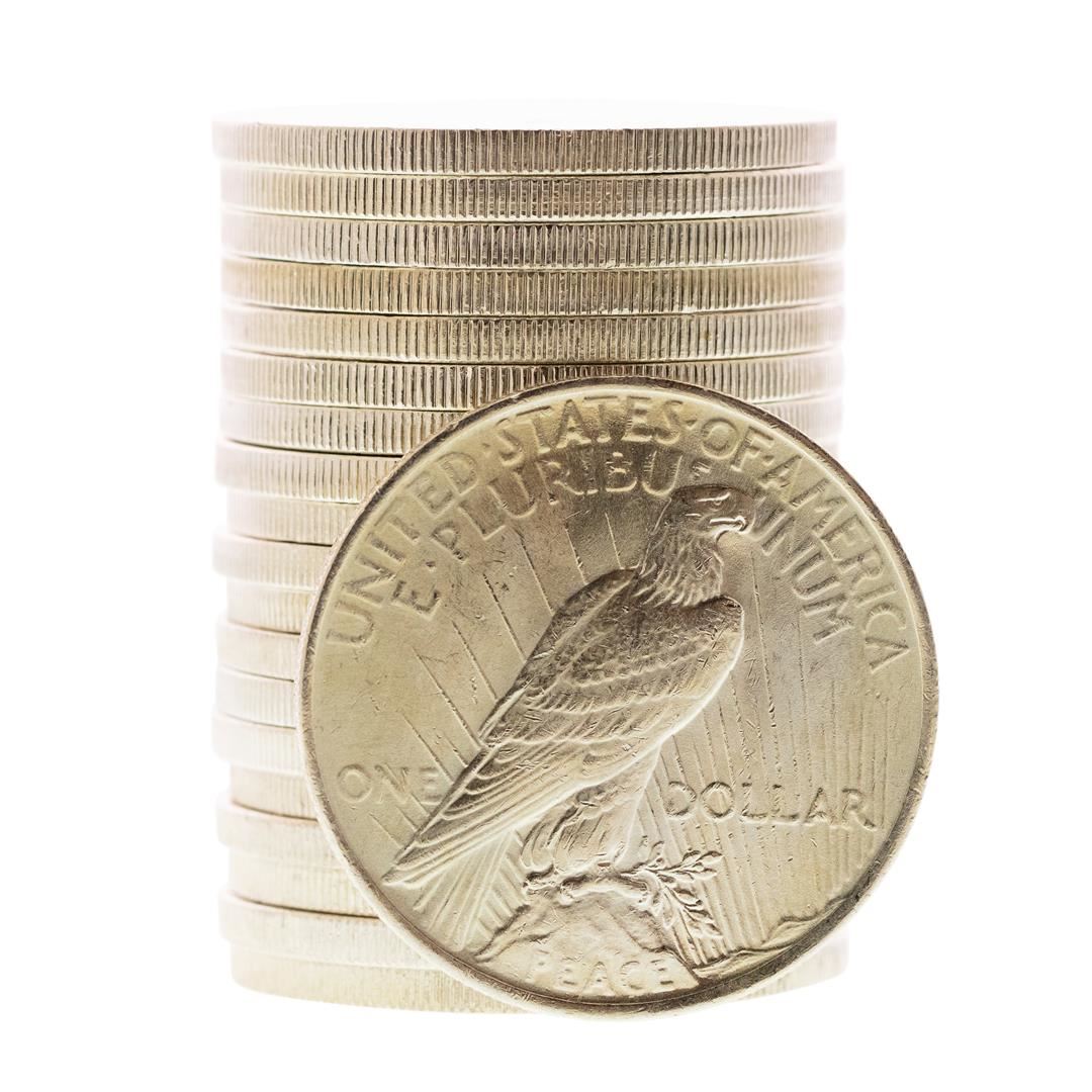 One Roll of (20) Brilliant Uncirculated 1923 $1 Peace Silver Dollar Coins.