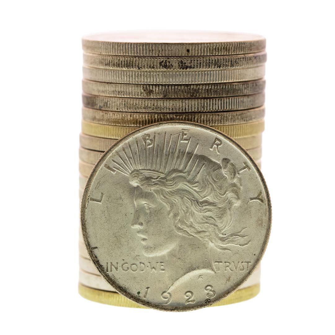Roll of (20) Brilliant Uncirculated 1923 $1 Peace Silver Dollar Coins