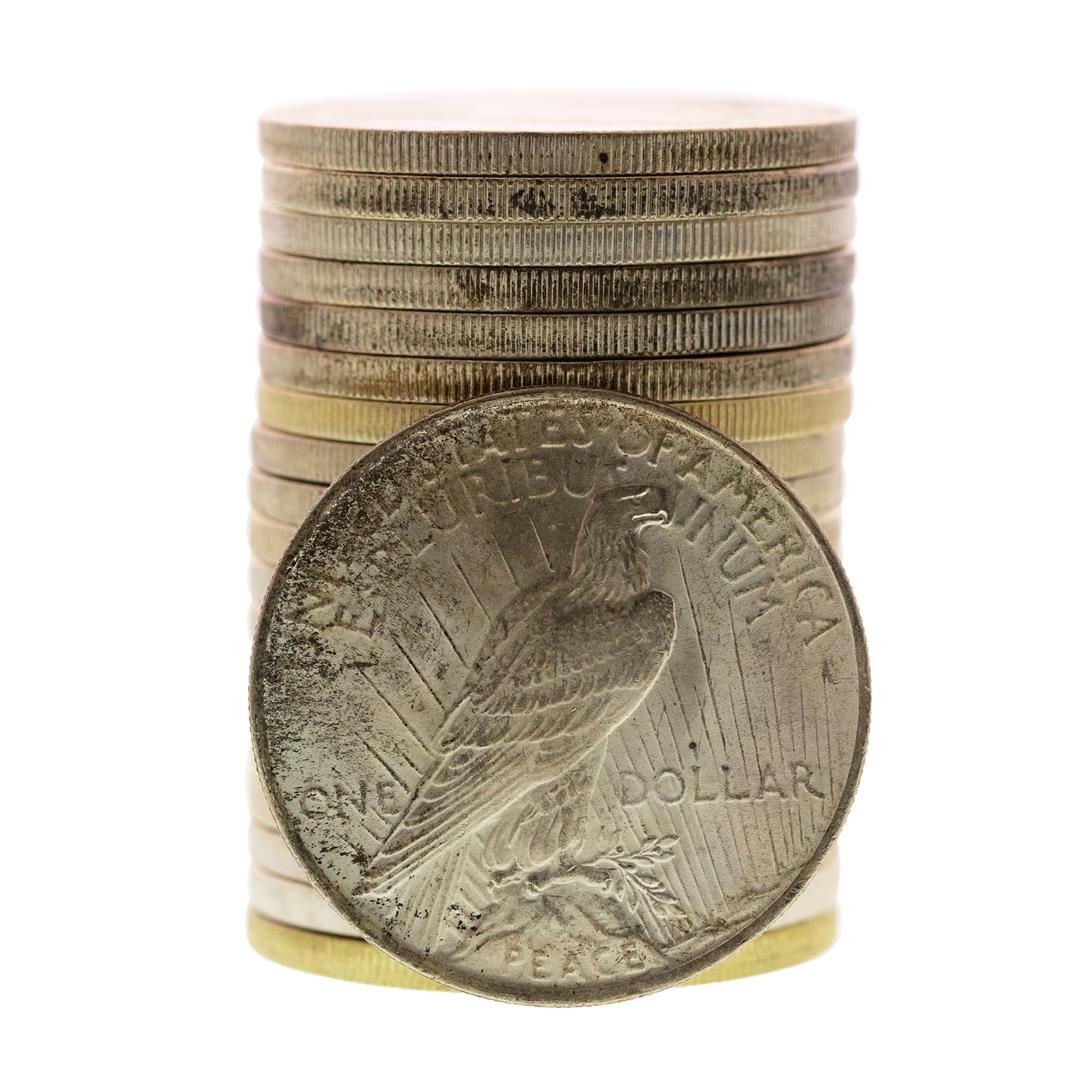 One Roll of (20) Brilliant Uncirculated 1923 $1 Peace Silver Dollar Coins.