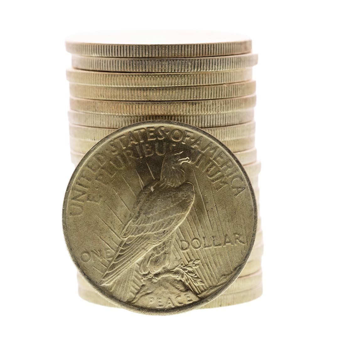 One Roll of (20) Brilliant Uncirculated 1923 $1 Peace Silver Dollar Coins.