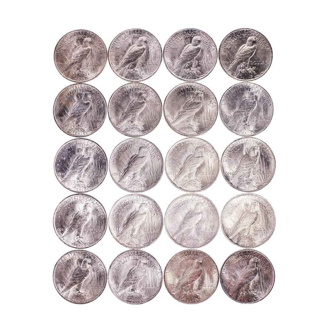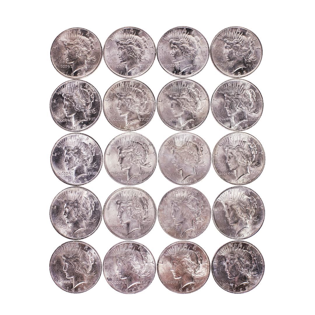 Roll of (20) Brilliant Uncirculated 1923 $1 Peace Silver Dollar Coins