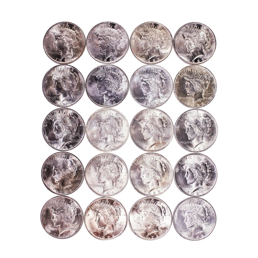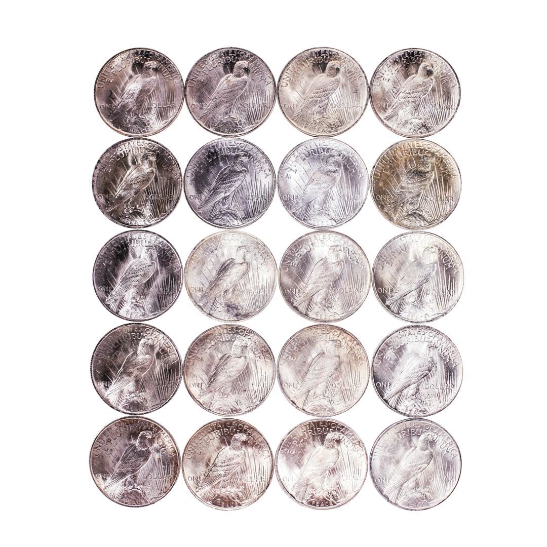 Roll of (20) Brilliant Uncirculated 1923 $1 Peace Silver Dollar Coins