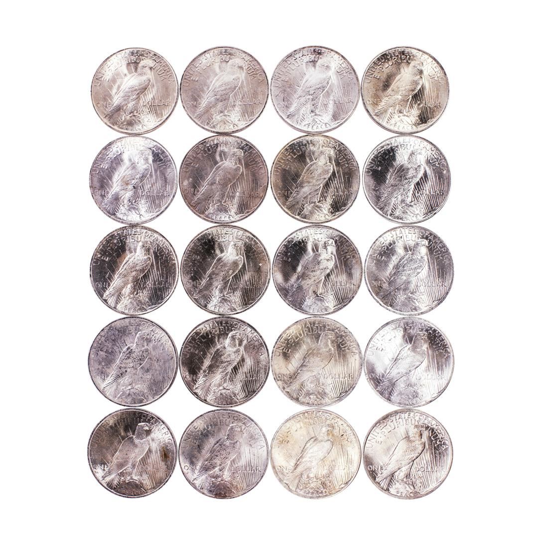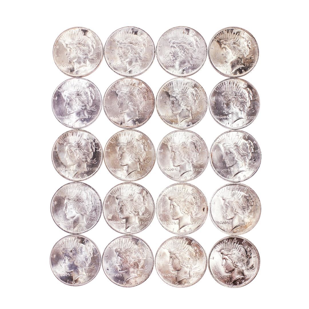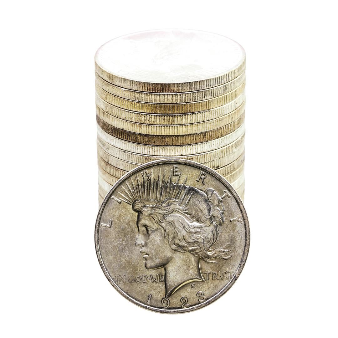 Roll of (20) Brilliant Uncirculated 1923 $1 Peace Silver Dollar Coins