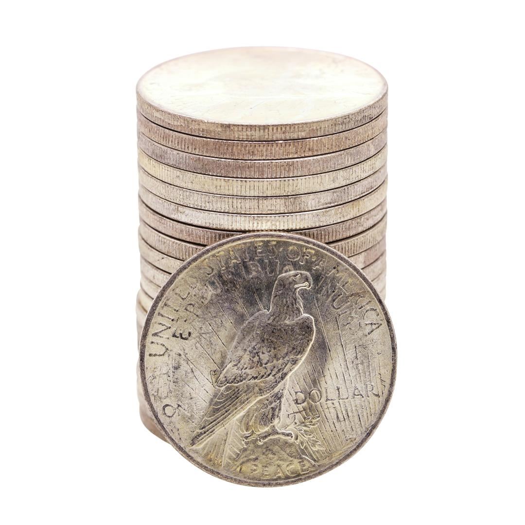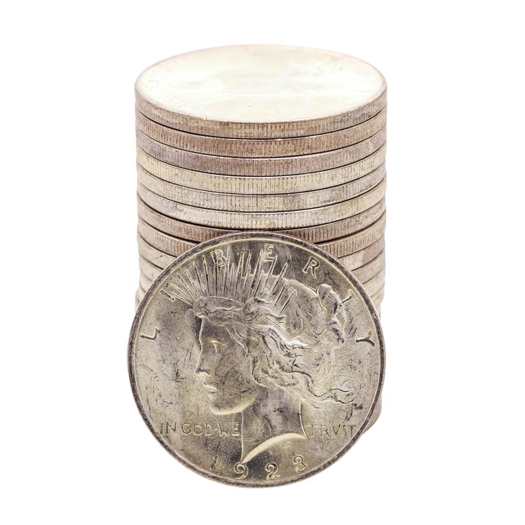 Roll of (20) Brilliant Uncirculated 1923 $1 Peace Silver Dollar Coins
