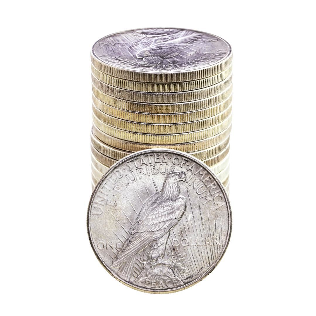 One Roll of (20) Brilliant Uncirculated 1924 $1 Peace Silver Dollar Coins.
