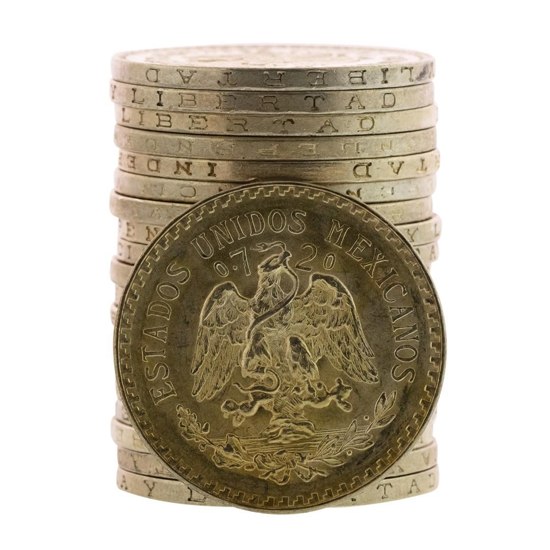Roll of (20) Brilliant Uncirculated 1932-1940 Mexico Un Peso Silver Coins