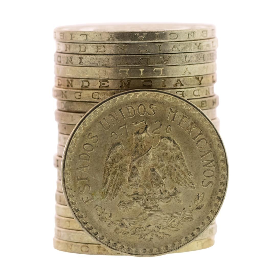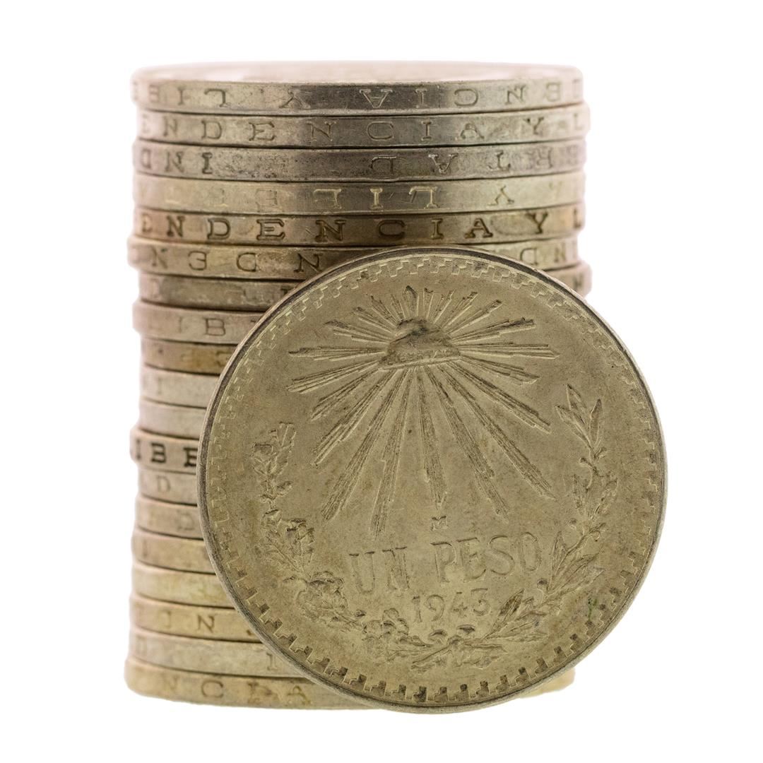 Roll of (20) Brilliant Uncirculated 1943 Mexico Un Peso Silver Coins