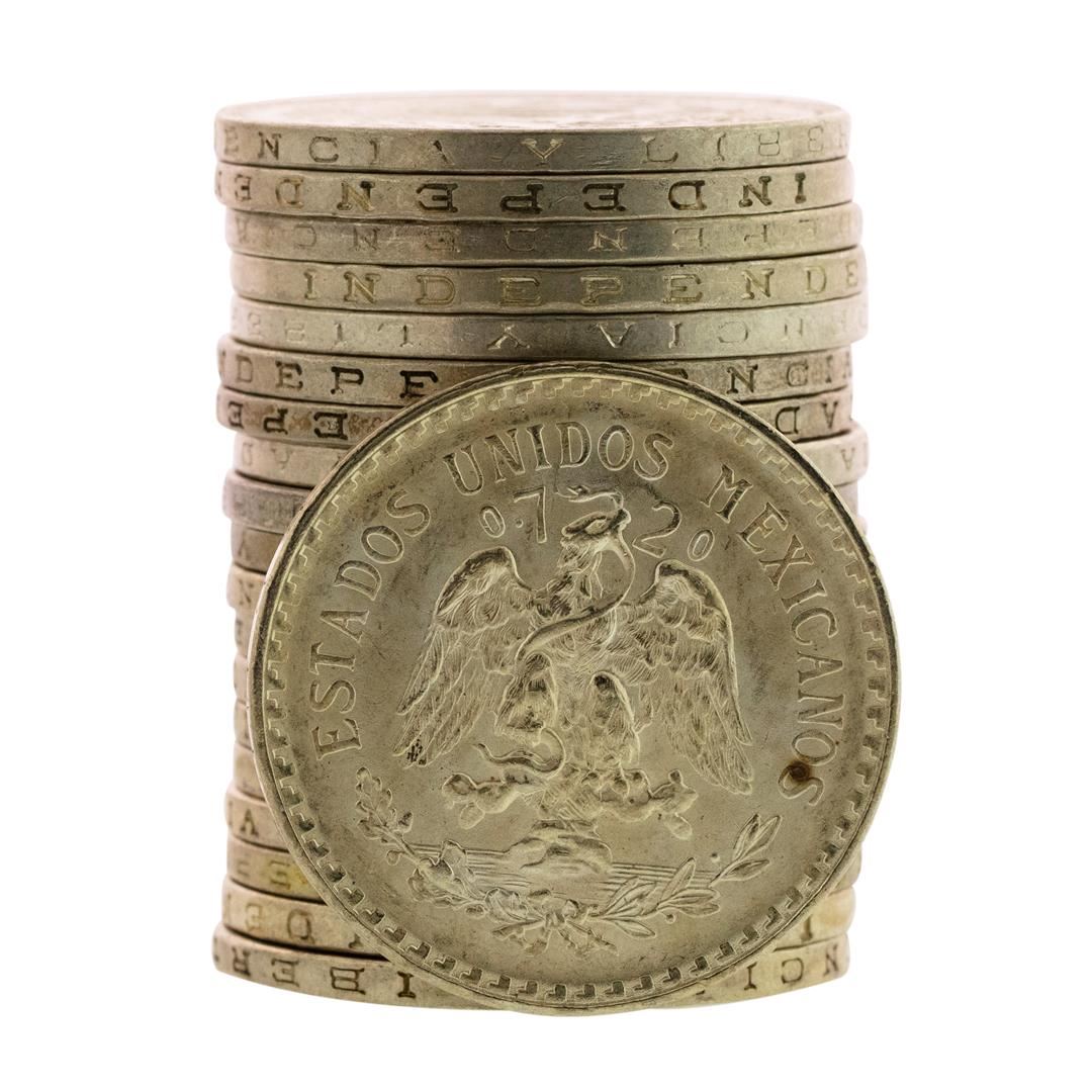 Roll of (20) Brilliant Uncirculated 1944 Mexico Un Peso Silver Coins