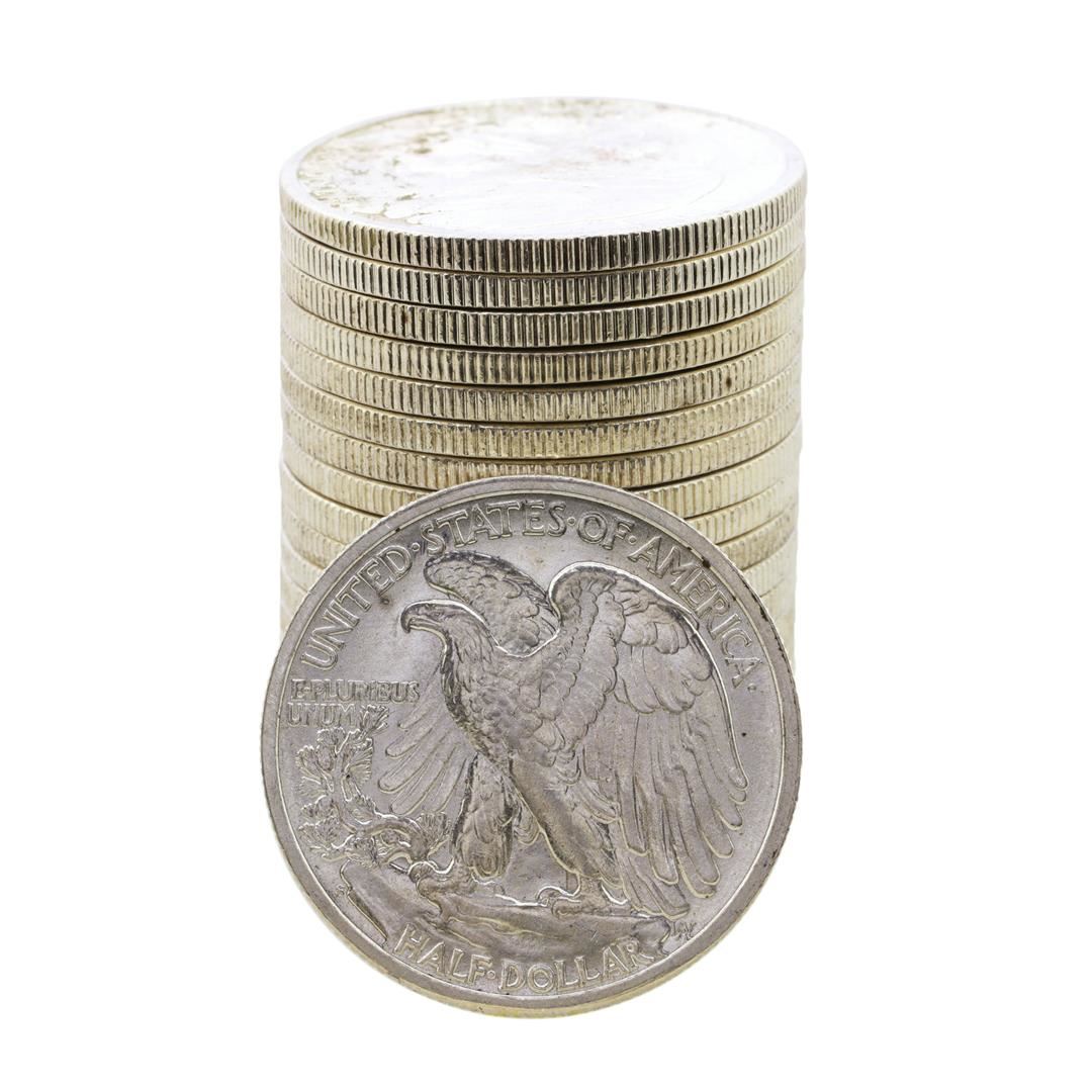 One Roll of (20) Brilliant Uncirculated 1944-S Walking Liberty Half Dollar Coins.