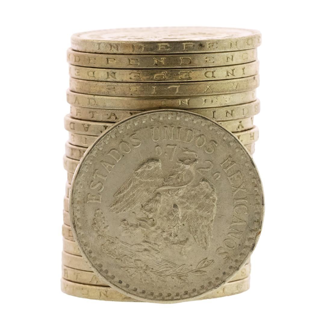 Roll of (20) Brilliant Uncirculated 1945 Mexico Un Peso Silver Coins