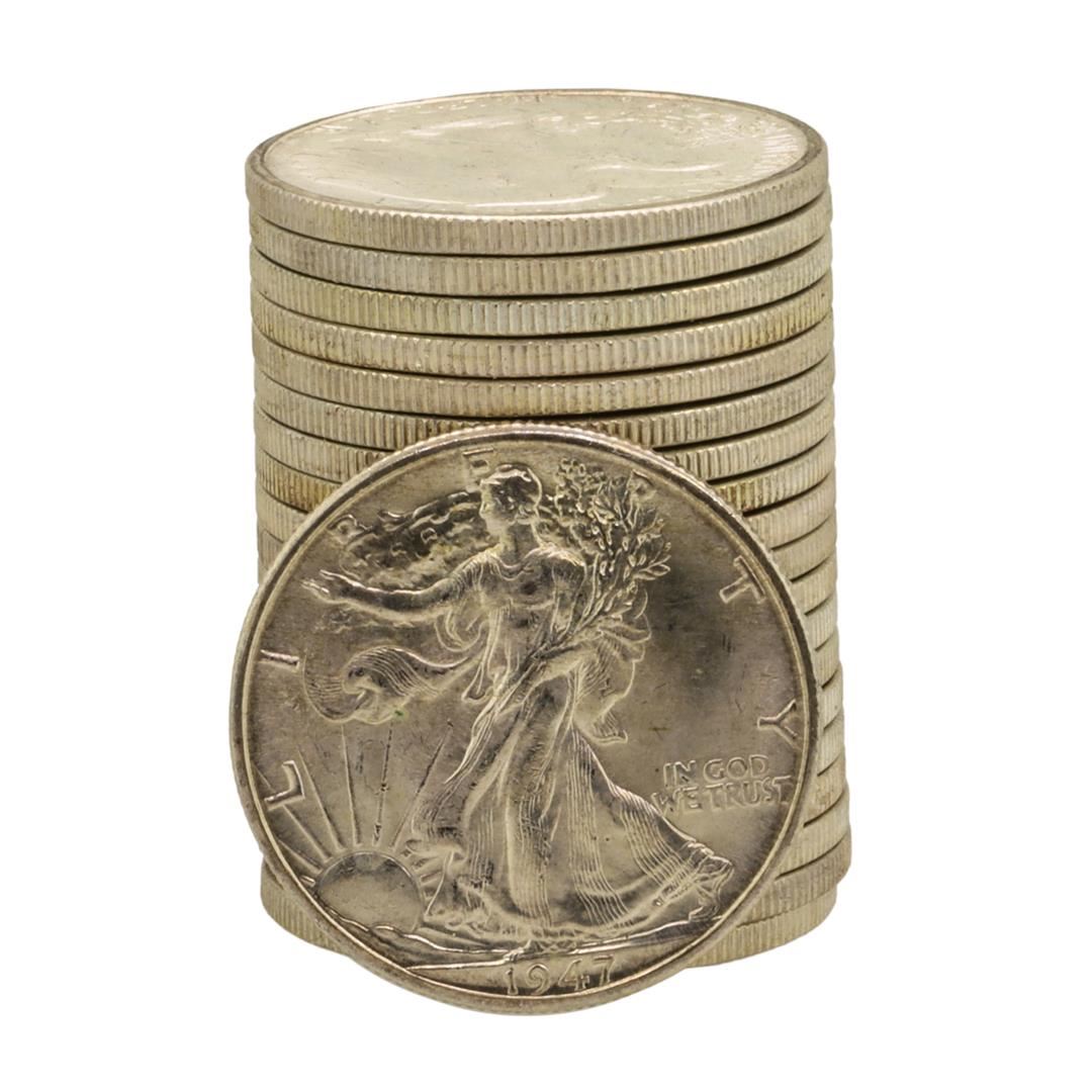 Roll of (20) Brilliant Uncirculated 1947-D Walking Liberty Half Dollar Coins