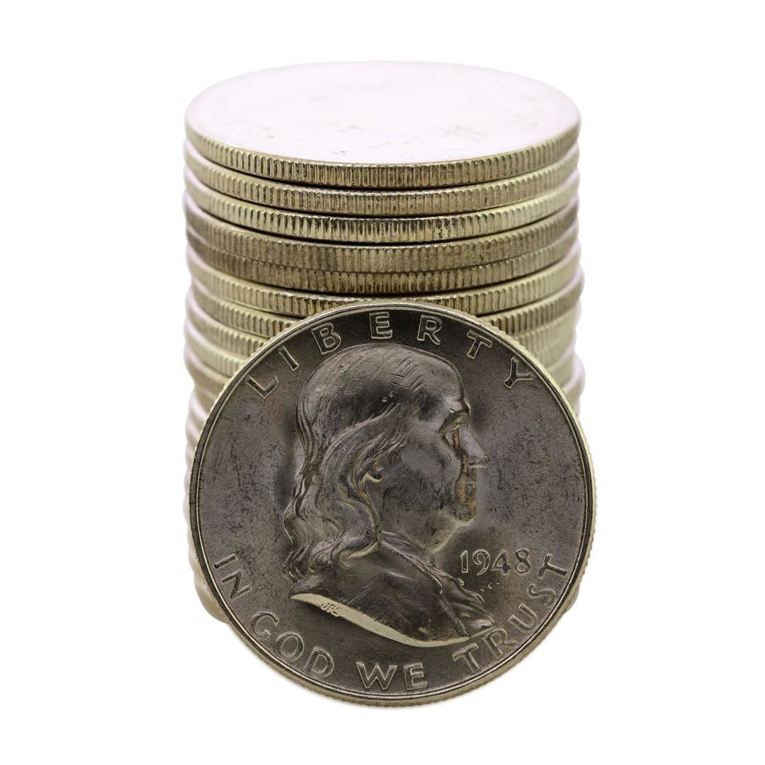 Roll of (20) Brilliant Uncirculated 1948-D Franklin Half Dollar Coins