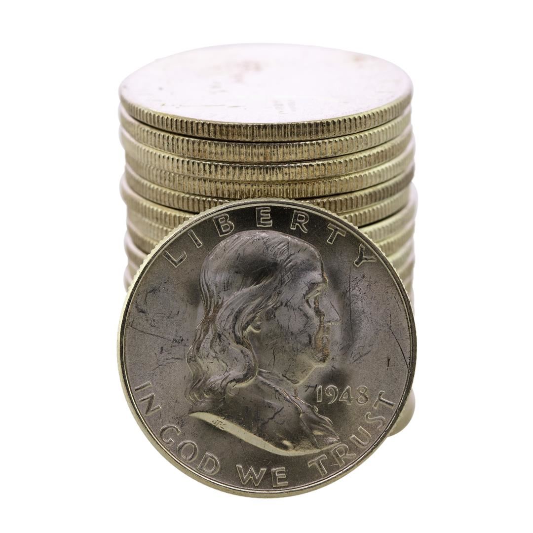 Roll of (20) Brilliant Uncirculated 1948-D Franklin Half Dollar Coins