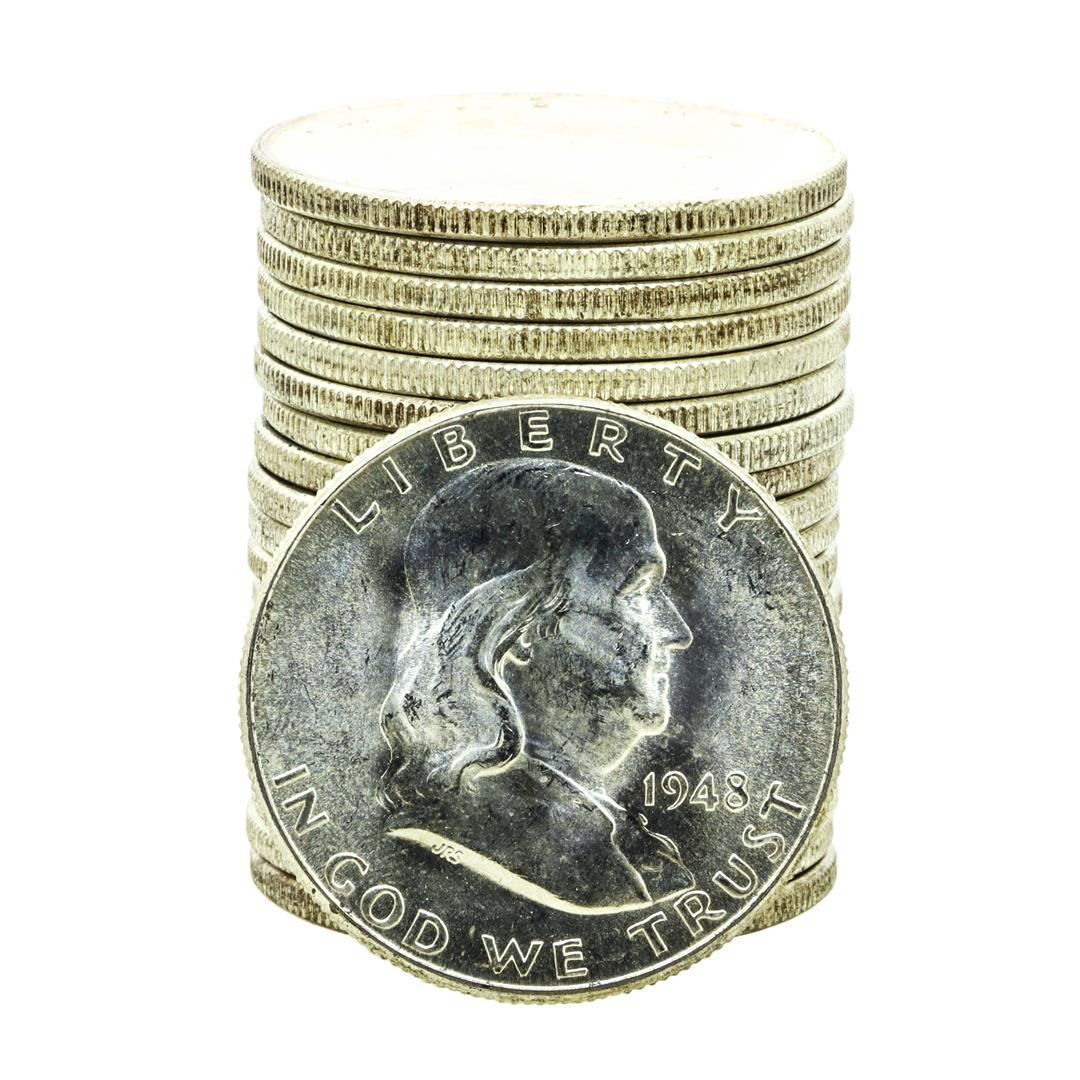 Roll of (20) Brilliant Uncirculated 1948-D Franklin Half Dollar Coins