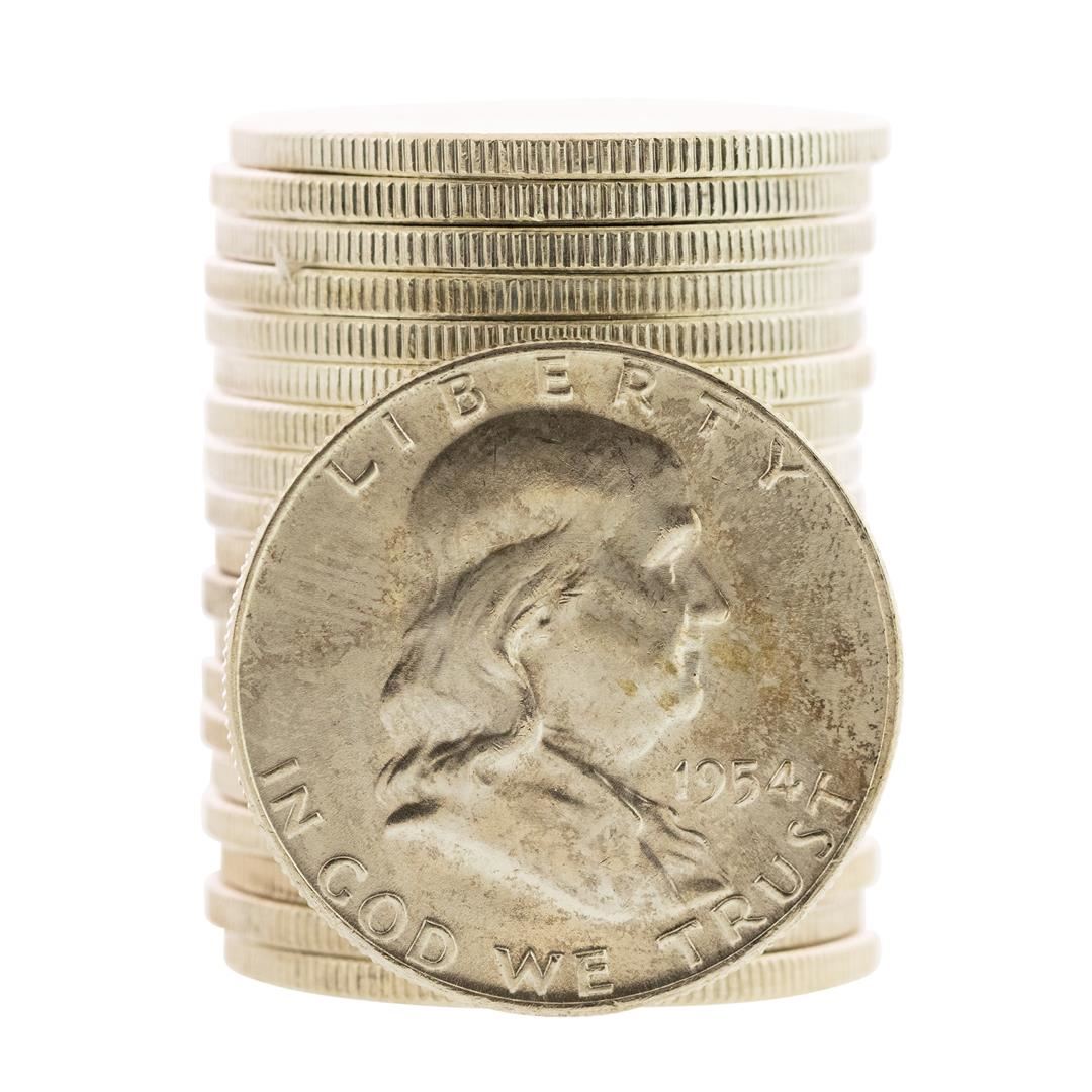 Roll of (20) Brilliant Uncirculated 1954-D Franklin Half Dollar Coins