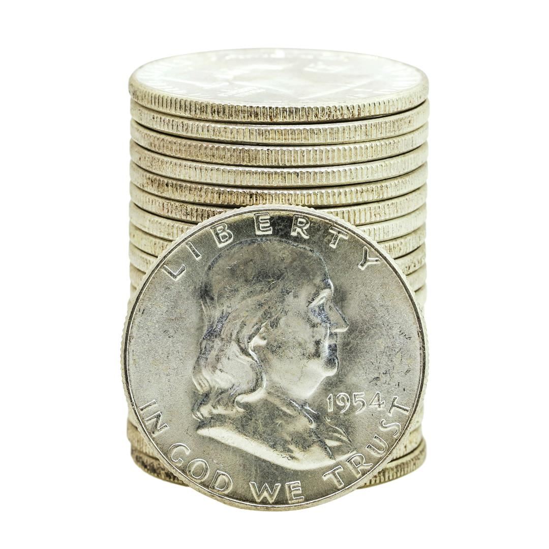 Roll of (20) Brilliant Uncirculated 1954 Franklin Half Dollar Coins