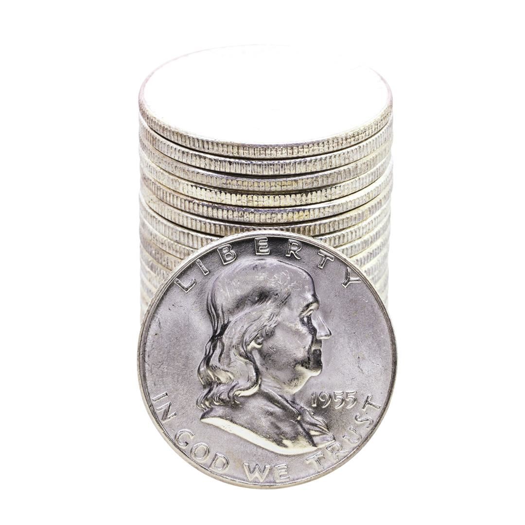 Roll of (20) Brilliant Uncirculated 1955 Franklin Half Dollar Coins