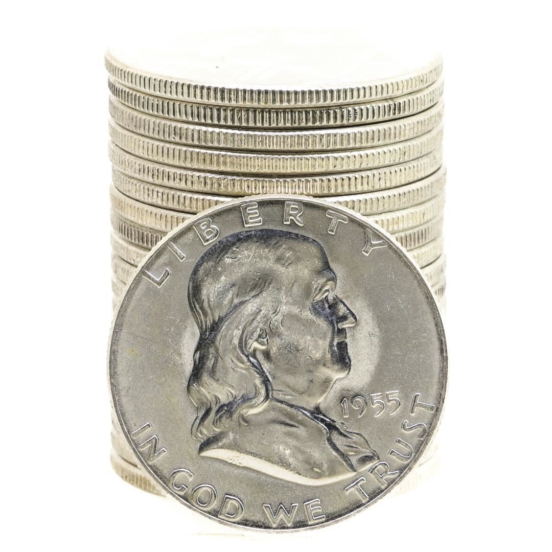 Roll of (20) Brilliant Uncirculated 1955 Franklin Half Dollar Coins