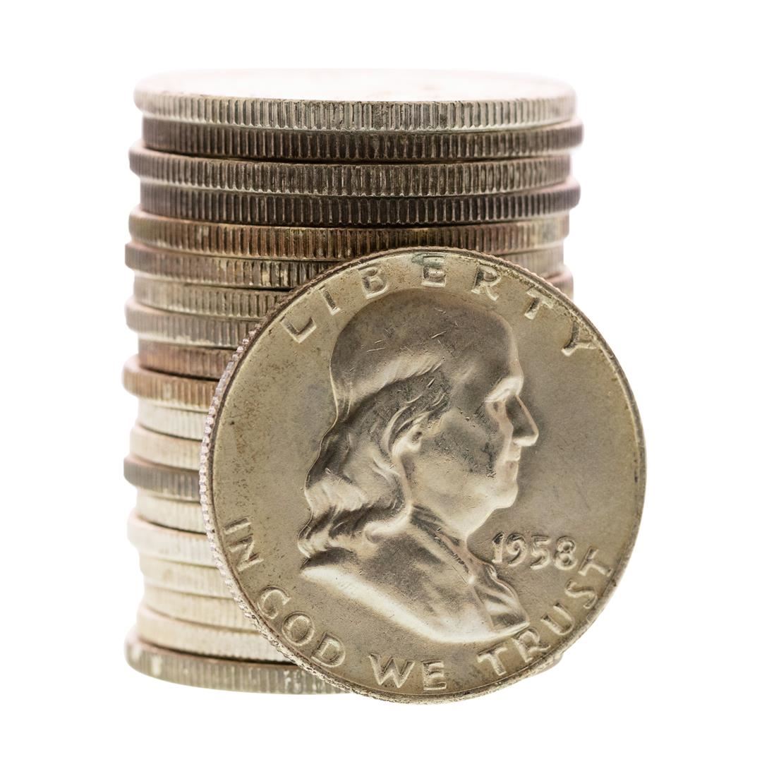 Roll of (20) Brilliant Uncirculated 1958-D Franklin Half Dollar Coins